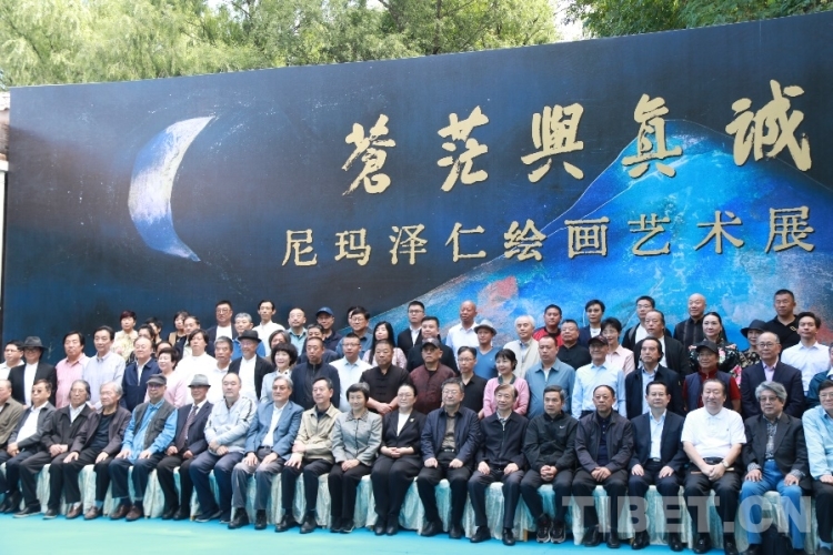 圖為尼瑪澤仁繪畫藝術展的開幕式合影 攝影:王妍丹