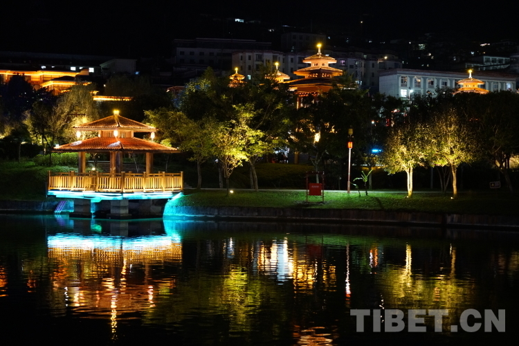 從福建援藏到廣東援藏,墨脫縣城的迅速發(fā)展離不開援藏兄弟省份不遠(yuǎn)千里深入喜馬拉雅腹地,走進(jìn)這朵圣地蓮花。蓮花圣地公園是每一個(gè)來墨脫縣旅游的人必打卡的地方,這里曾經(jīng)是一片沼澤地,在廣東省第七批援藏工作隊(duì)的規(guī)劃和建設(shè)下于2016年4月竣工,如今有湖泊、曲廊、涼亭、籃球場(chǎng)等齊全的基礎(chǔ)設(shè)施和園林景觀,成為了游客和當(dāng)?shù)厝诵蓍e的好去處。夜幕降臨,蓮花圣地公園內(nèi)的景觀燈倒映在湖泊當(dāng)中,一位來自四川的游客一邊拍照一邊和同行伙伴說“這里巴適得很。”