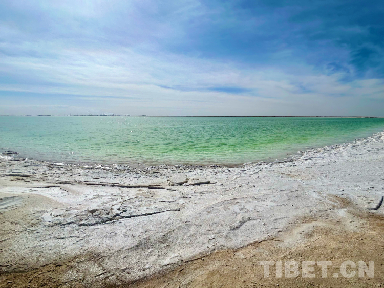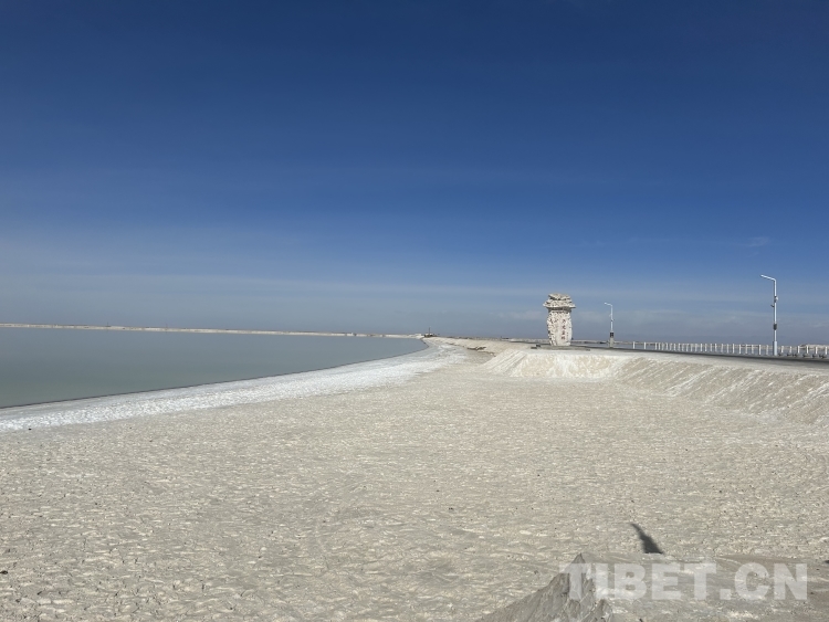 這里是鹽的天堂。湖水是高濃度的鹵水,蘊藏著極其豐富的氯化鈉、氯化鉀、氯化鎂等無機鹽。厚度近20米的堅硬鹽蓋構成天然的鹽橋,旁無護欄,下無橋墩,更無流水。我們的汽車疾馳而過,毫無顛簸之感。湖岸邊有大量析出的鹽晶,形成厚實的白色鹽灘,在高原陽光的直射下發(fā)出晃眼的白光。(中國西藏網 文/李一凡 龍真多吉 張萌萌)