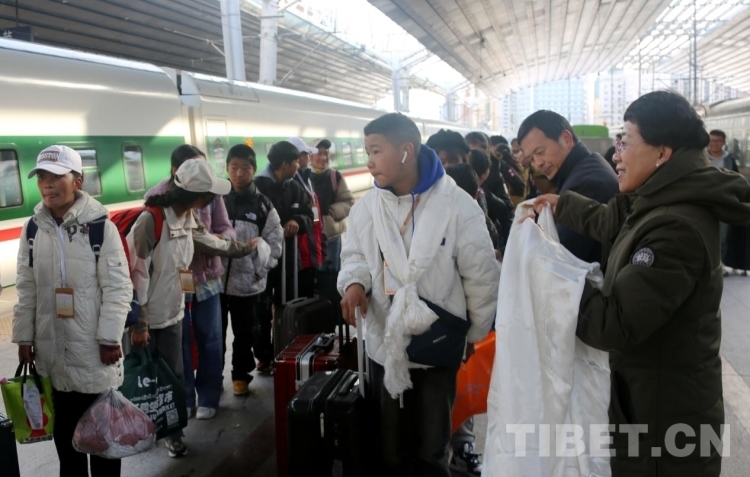 圖為抵達(dá)北京后,西藏自治區(qū)人民政府駐北京辦事處相關(guān)負(fù)責(zé)人在站內(nèi)接車 攝影:王佳豪