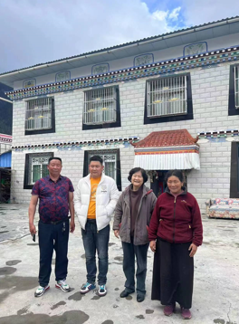 圖為20多年后馬麗華在林芝市永久村再訪阿松(左一),并與他的家人在他家的“豪宅”前合影