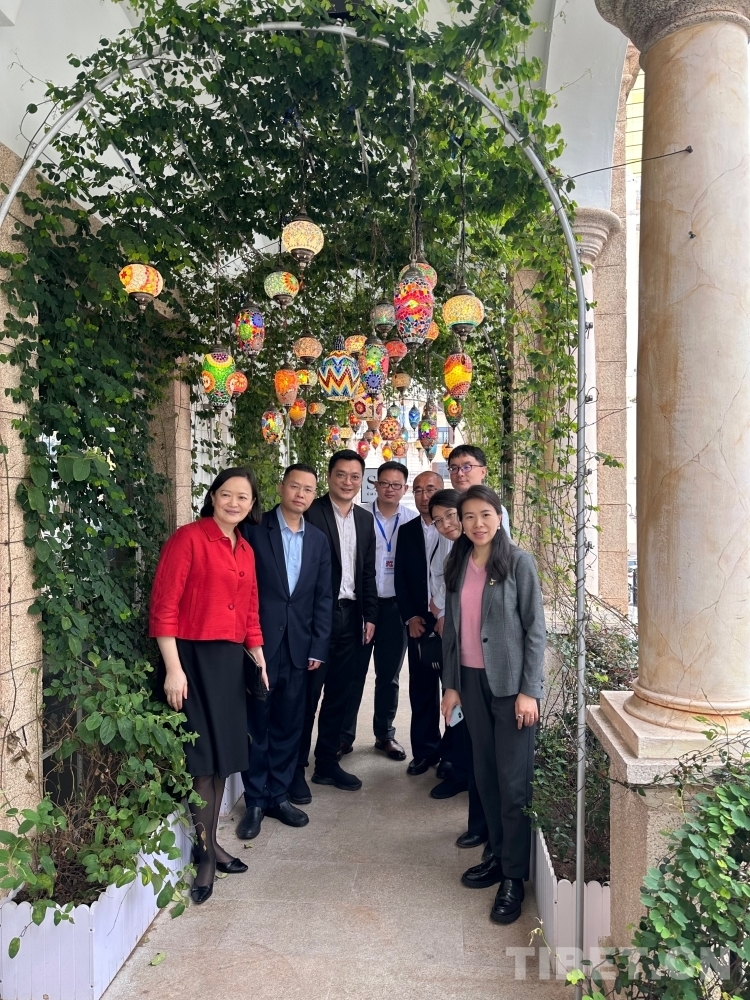 她親切地與帕洛扎用藏語交流,倆人一下子打開了話匣子。帕洛扎后來告訴我們,讓他感到非常驚喜和意外的是,卓瑪姐的藏語竟然說的如此標(biāo)準(zhǔn),是純正的拉薩話。只是學(xué)習(xí)了幾天藏語的我,僅能聽清楚幾個(gè)詞的發(fā)音,??????????(西藏)、?????(拉薩)、?????????(藏族),但是從他們聊天的神色中,我能感受到那種對西藏的情懷與在異鄉(xiāng)見到老鄉(xiāng)的親切與激動(dòng)。我跟隨帕洛扎學(xué)了幾天藏語,雖然僅會(huì)說幾句簡單的問候語,但還是鼓起勇氣用藏語向卓瑪老師問候:“???????? ????????????????? ???????????????(老師,扎西德勒,我是呂靜)?!蔽业耐乱簿o跟著問候:“????????????? ???????????????????????????????????????(您好,我的名字叫曲瑩益西)?!鼻撘嫖魇俏疫@位同事的藏族名字。幾句藏語的問候一下子拉近了我們與卓瑪姐的距離,她驚喜又欣慰,原來我們都能講上幾句藏語。她還親切地勉勵(lì)我們,要多學(xué)多用藏語,對工作也會(huì)有很大幫助。當(dāng)她得知身邊坐著的同事是寧波人時(shí),她還立馬切換寧波方言與對方聊天。原來卓瑪姐的母親是浙江寧波人,在家里都會(huì)講寧波話,而她的丈夫是葡萄牙人,她還能講葡萄牙語。具有極強(qiáng)語言天賦的她,在澳門這樣一個(gè)中西方文化匯聚的地方,作為澳門基金會(huì)行政委員會(huì)的一員,她也用自己的方式,不斷促進(jìn)中葡、藏澳等地經(jīng)濟(jì)、文化等方面的交流互促。