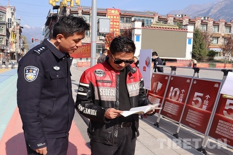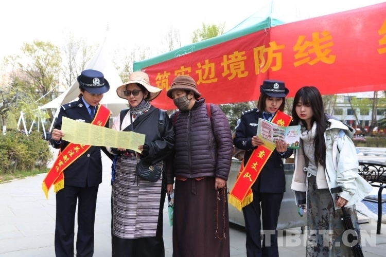 圖為西藏邊檢總站執(zhí)法調(diào)查支隊民警在西藏拉薩向群眾普及國家安全知識