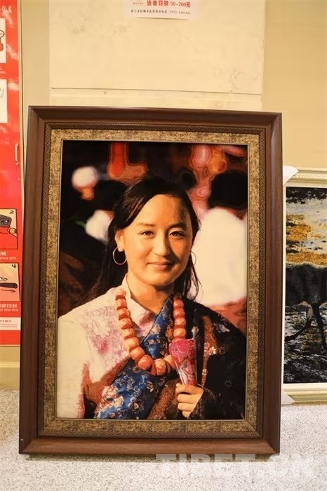 圣源地毯展示中心展示的很多圖案都栩栩如生,又與眾不同。圖為藏族女孩圖案的藏毯 攝影:王茜
