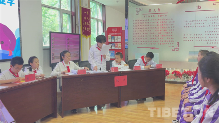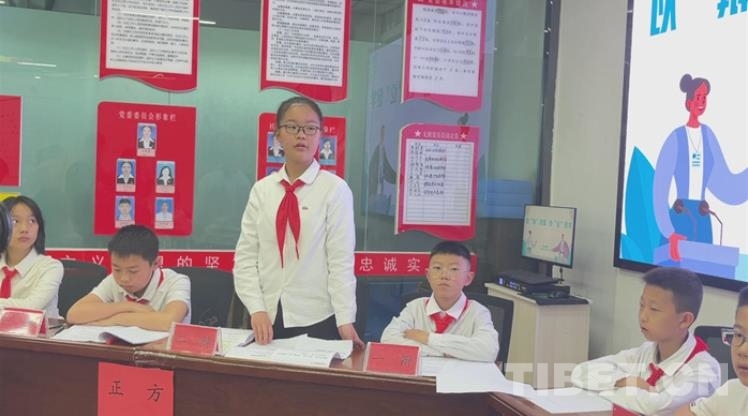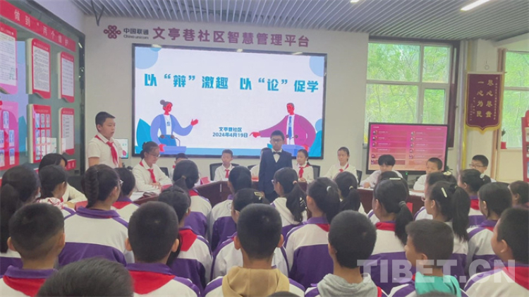 中國(guó)西藏網(wǎng)訊 4月19日,青海省西寧市海湖新區(qū)的文亭巷社區(qū)活動(dòng)室里,傳出稍顯稚嫩卻有力的聲音:“今天我們辯論的題目是:中小學(xué)生應(yīng)不應(yīng)該使用電子產(chǎn)品。下面介紹雙方辯手……”這是文匯小學(xué)五年級(jí)二班的學(xué)生在此開展辯論賽。
