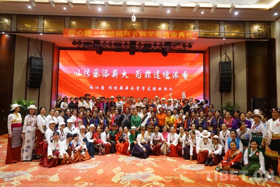 中國西藏網(wǎng)訊 5月9日,由同心圓傳統(tǒng)藏舞會(huì)堂舉辦的“為傳承添薪火 為非遺增濃香”傳統(tǒng)藏舞首批學(xué)員結(jié)業(yè)典禮在陜西西安舉行。22名學(xué)友經(jīng)過一年多的辛勤努力終于迎來了結(jié)業(yè)典禮,同時(shí)現(xiàn)場還為9名優(yōu)秀學(xué)員頒發(fā)推廣人證書。
