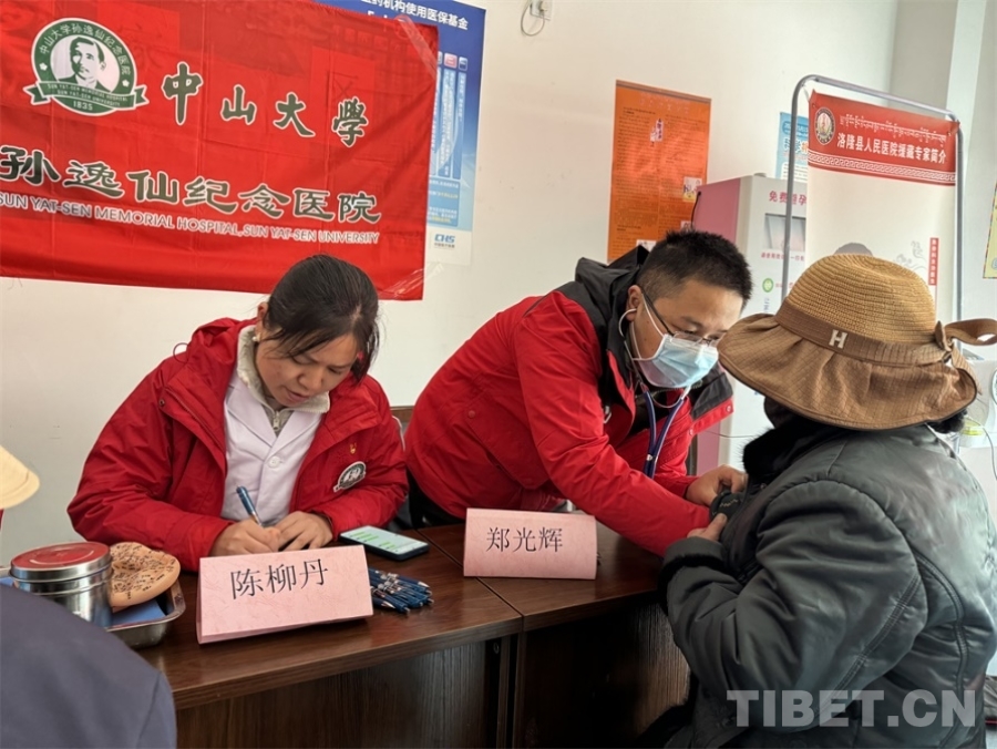 來自廣州中山大學(xué)孫逸仙紀(jì)念醫(yī)院中醫(yī)科的陳柳丹在義診現(xiàn)場為患者開展了中醫(yī)治療,“今天我們開展的中醫(yī)診療包括穴位貼的貼敷、艾灸治療、平衡火罐之類的,我們想讓洛隆的更多群眾了解急救的知識,了解中藏醫(yī)療法。”