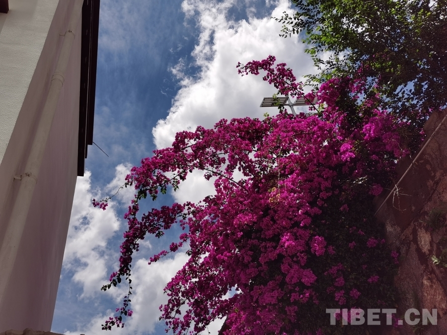 圖為瓦卡鎮(zhèn)路邊盛開的三角梅 攝影:鄒慧