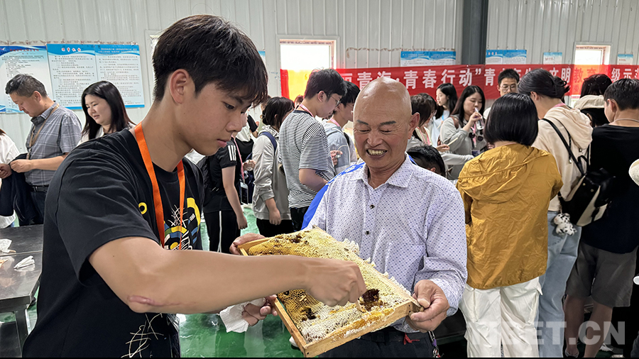 來自香港仁濟醫(yī)院第二中學的朱紫賢平時喜歡在食物中加入蜜糖,“但直到今天,我才對于蜜蜂采蜜有了進一步的認識?!彼朔藢γ鄯涞目謶?,近距離觀察到蜜蜂有條不紊的工作,也初步了解了蜂蜜的品質會隨著海拔高度的增加而提升,以及蜂蜜的味道會因蜜源地域或鮮花季節(jié)的不同而產生變化。“青海屬于高海拔地區(qū),我認為中華蜜蜂所采的蜜露營養(yǎng)價值很高很珍貴,很高興今天學到這些蜂文化知識。”