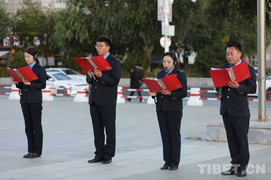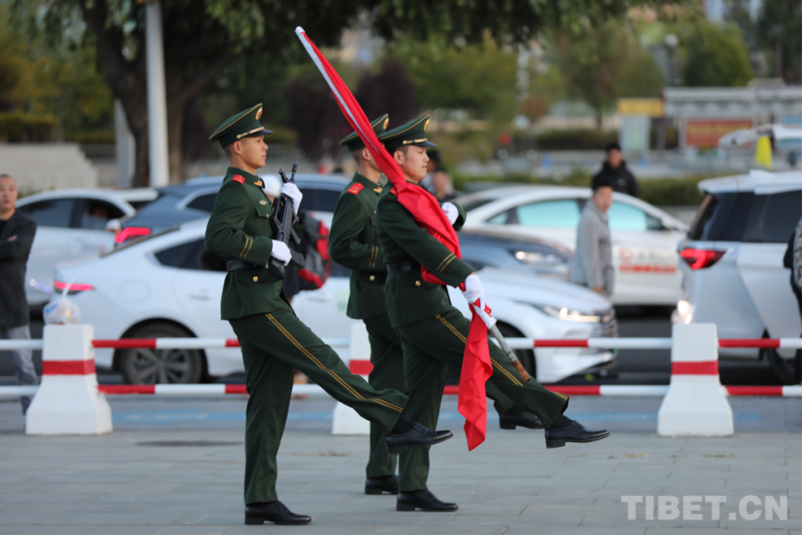 中國西藏網(wǎng)訊 在新中國成立75周年這一榮耀時刻,拉薩火車站舉行了一場莊嚴(yán)而隆重的升國旗儀式。10月1日上午8時整,雄渾的國歌聲奏響,駐站武警儀仗隊邁著整齊劃一的步伐,護衛(wèi)著五星紅旗走向國旗基座。在火車站干部職工的凝視下,五星紅旗冉冉升起,那是祖國繁榮昌盛的象征。