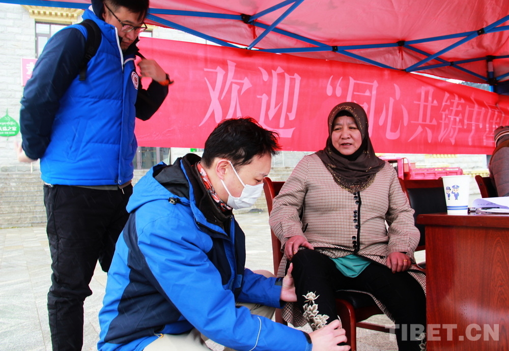 高原的大雪天,在室外即便來(lái)回走動(dòng)也感覺(jué)格外寒冷。前來(lái)問(wèn)診的患者絡(luò)繹不絕,醫(yī)務(wù)志愿者們堅(jiān)守崗位,身披雪花,腳踩積雪,在翻譯的幫助下不停接診,一坐就是大半天。有的醫(yī)務(wù)志愿者專心接診,渾然不知衣服上已經(jīng)積雪;有的醫(yī)務(wù)志愿者發(fā)現(xiàn)患者不太理解疾病的分科,就同時(shí)擔(dān)起了分診工作;有的醫(yī)務(wù)志愿者自身高反強(qiáng)烈,吸著氧也要堅(jiān)持接診……
