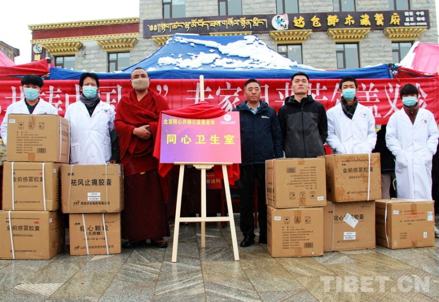 為使若爾蓋郎木寺“同心衛(wèi)生室”運(yùn)作更加順利,北京同心共鑄公益基金會(huì)向該衛(wèi)生室捐助了價(jià)值5萬(wàn)元的藥品。(中國(guó)西藏網(wǎng) 記者/劉莉)