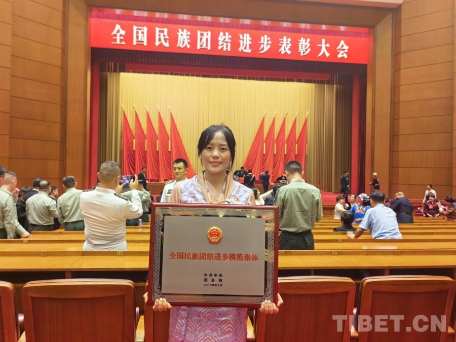 圖為曲擁措姆代表工作室參加全國民族團結進步表彰大會