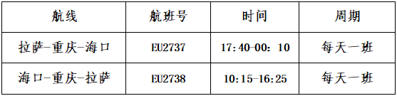 圖為拉薩?重慶?海口航線時(shí)間表,具體以航班飛行實(shí)際時(shí)間為準(zhǔn)