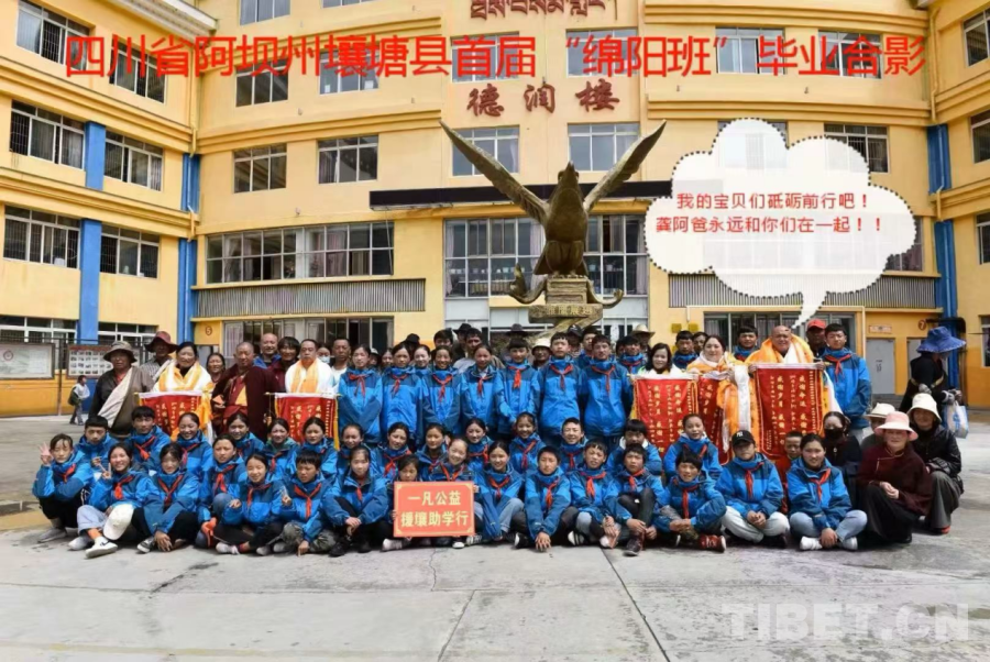 同年,為彌補孩子的英語短板,龔仙彥申請讓長期擔任高中教學工作的妻子也到壤塘一起帶“綿陽班”,這也是他期待已久的事情:“能夠和妻子照顧孩子們的生活、輔導(dǎo)孩子們的薄弱學科,很幸福!”首屆“綿陽班”畢業(yè)后,龔仙彥和身邊的愛心朋友還組建了一支“情牽壤巴拉”愛心團隊,來鼓勵壤塘的孩子們繼續(xù)學習,他說:“我們將一直陪著孩子們長大、成人、成才!”。