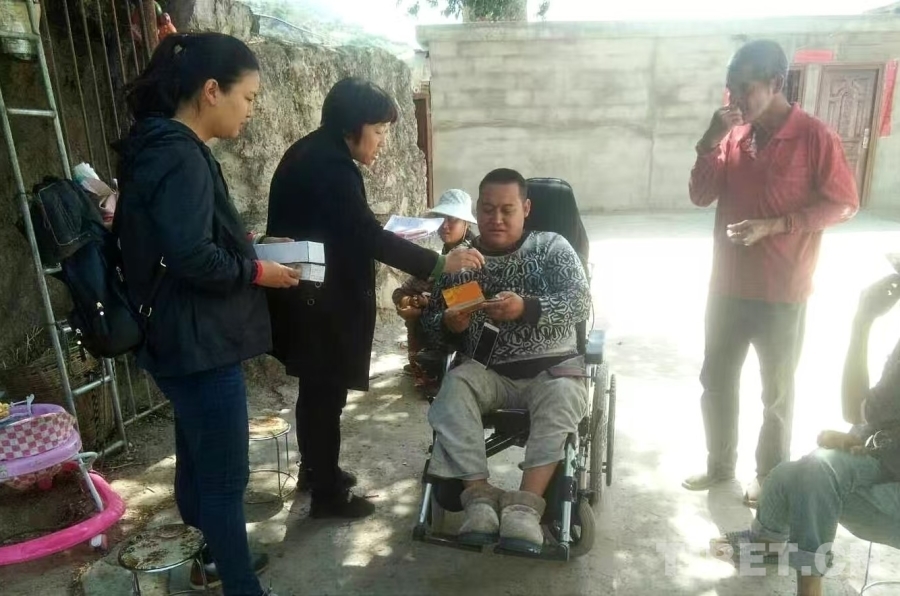 圖為寧秀蓉(左二)為群眾送去扶持資金 受訪者供圖