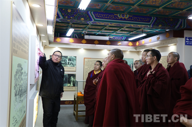 圖為西藏佛學院一行參觀西黃寺內(nèi)展覽 攝影:王茜
