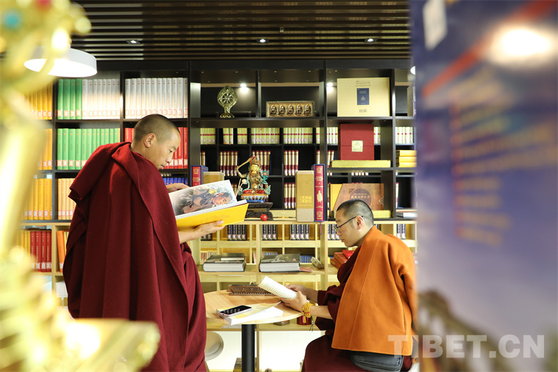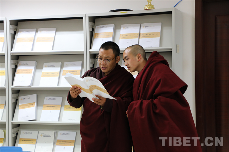 學員們在環(huán)境雅致、設施完善的中國藏語系高級佛學院圖書館里“打卡”。該圖書館擁有豐富的藏文文獻資源,為學員們提供了舒適的交流場所和學習環(huán)境。西藏佛學院的學員們也紛紛投入知識的海洋進行閱覽。