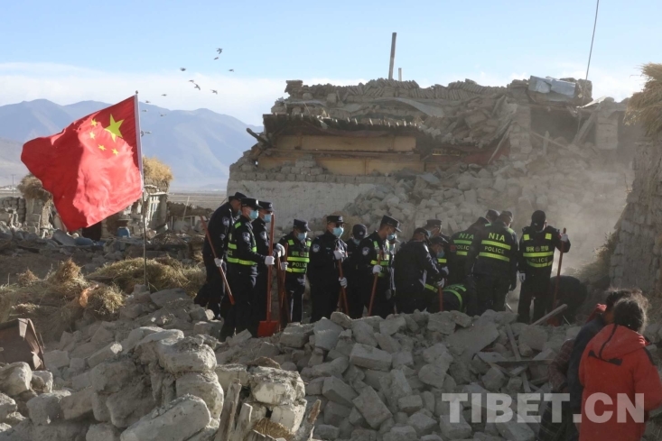 中國西藏網(wǎng)訊 1月7日9時5分,在西藏日喀則市定日縣措果鄉(xiāng)附近發(fā)生6.8級地震,震源深度10千米。西藏出入境邊防檢查總站移民管理警察在西藏日喀則市定日縣長所鄉(xiāng)玉白村參與救援及安置工作。五星紅旗之下,是國家對災區(qū)群眾的守護,亦是災區(qū)群眾對黨和國家救援力量的期盼。有五星紅旗的地方就有信念的燈塔,這是災區(qū)一線的守望!(中國西藏網(wǎng) 通訊員/郭遠敬)