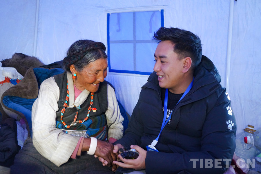“我們村只有11戶79人,是郭加鄉(xiāng)相對較小的一個村子,村子里大多數(shù)都是老人和孩子。地震發(fā)生后,大家都非??只?,我們村干部和黨員們第一時間集結(jié)在一起,挨家挨戶進(jìn)行排查,把大家集中在村中的空地里,想盡一切辦法安撫他們的情緒。”白堆村村主任兼駐村工作隊副隊長拉巴告訴記者,地震發(fā)生的當(dāng)天晚上,村子里就已經(jīng)搭建好了帳篷,幫助受災(zāi)群眾解決了生活物資、安置供暖等問題。