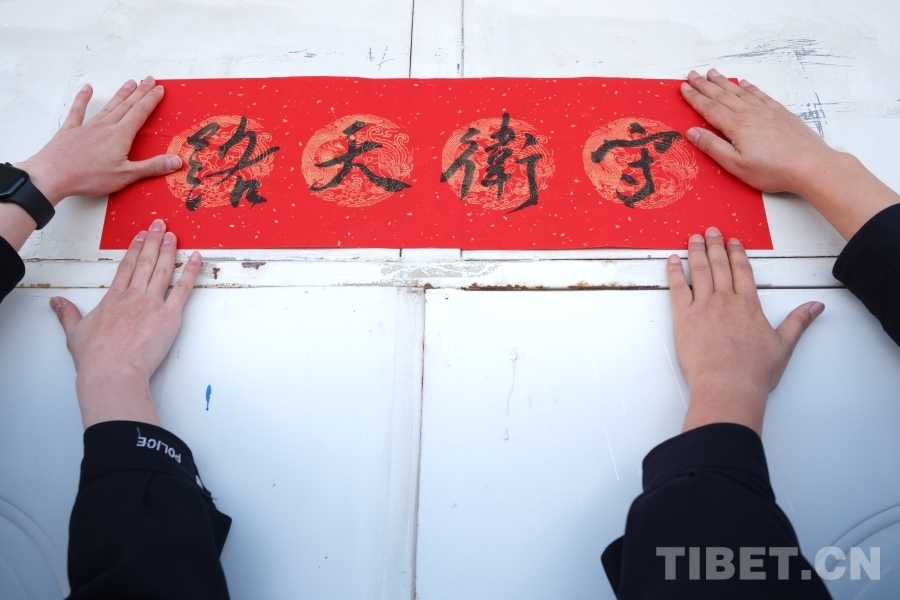 圖為駐站民警在新春來(lái)臨之際,用心寫(xiě)下最美好的愿望“守衛(wèi)天路”,用行動(dòng)保衛(wèi)鐵路運(yùn)輸安全。攝影:賀瑞明