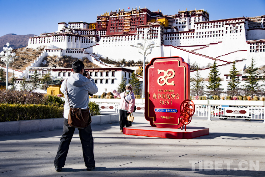圖為游客在央視春晚西藏拉薩分會(huì)場(chǎng)標(biāo)識(shí)前打卡 攝影:趙振宇
