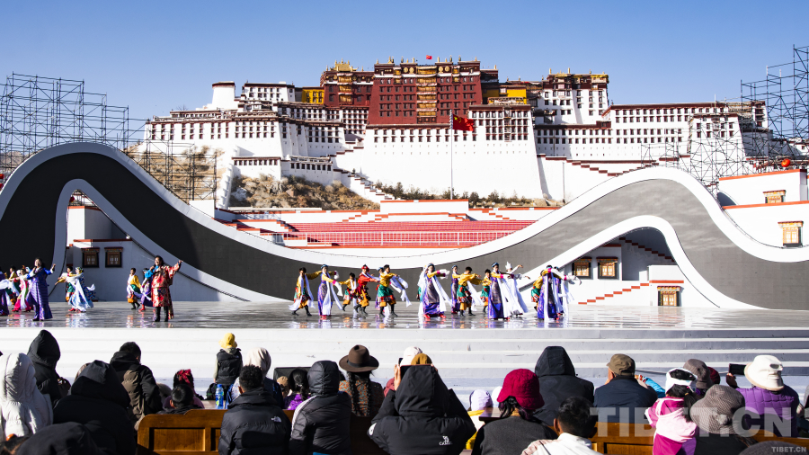 2月1日,農(nóng)歷正月初四,布達(dá)拉宮廣場(chǎng)上的藏式沙發(fā)座無(wú)虛席,由西藏自治區(qū)文化和旅游廳、拉薩市委宣傳部、拉薩市文化和旅游局組織的惠民演出正在總臺(tái)春晚西藏拉薩分會(huì)場(chǎng)的舞臺(tái)上上演。居住在八廓街附近的小拉姆告訴記者,演出每天下午4點(diǎn)開(kāi)始,但她跟著爺爺奶奶每天下午3點(diǎn)便早早出門(mén)來(lái)到這里占座。環(huán)顧觀(guān)眾席四周,游人早已將觀(guān)眾席包圍起來(lái),紛紛拿出手機(jī)打卡拍照,記錄下的不僅僅是極具民族風(fēng)情的演出節(jié)目,更是別具特殊意義的農(nóng)歷春節(jié)。