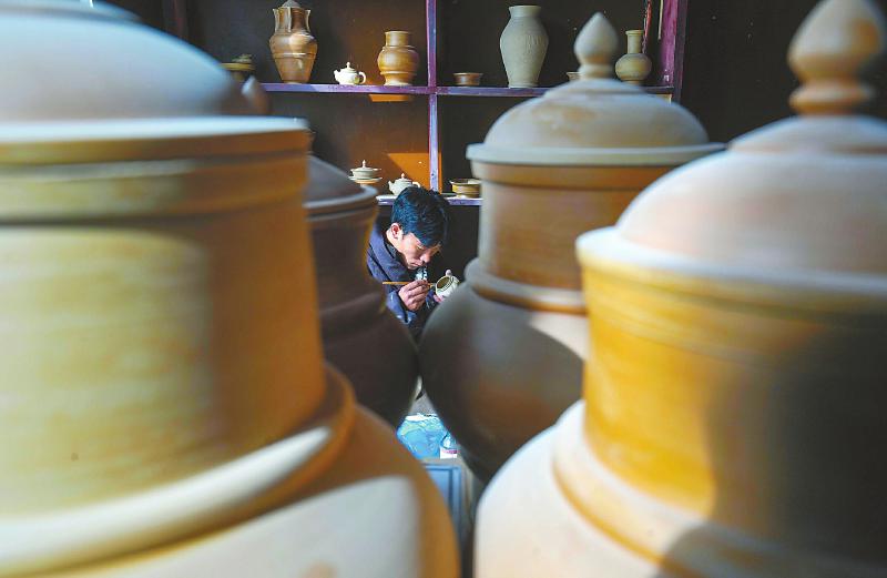 12月的冬日陽光透過壤巴拉藏式陶藝傳習(xí)所的窗口,在飛轉(zhuǎn)的泥坯上折射出金色的光芒。在四川省阿壩藏族羌族自治州壤塘縣上壤塘鄉(xiāng)仁棚村的這間陶藝傳習(xí)所,澤郎斯加正在陶器原型上修坯。澤郎斯加和傳習(xí)所的18名學(xué)員,都來自于壤塘縣貧困牧民家庭,經(jīng)過六年的學(xué)習(xí)和進修,他們在陶藝傳習(xí)所已熟練掌握了藏陶的拉坯、修坯、燒制等綜合技藝,并完成了德育、藏文、漢語、數(shù)學(xué)、電子商務(wù)、藏漢文書法、基礎(chǔ)繪畫等課程培訓(xùn)。