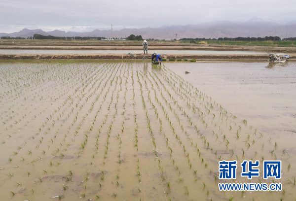 青島海水稻研究發(fā)展中心培育工程師張國東介紹,6月5日,在海拔2800米的河西農(nóng)場,第一株高原寒地海水稻“踏入”柴達木盆地的荒灘里,“到19號,機插秧階段基本完成,之后還要進行補苗、灌水、排水、施肥等工作,實施水肥藥一體化管理并做好田間水稻生長情況記錄等?!薄昂K尽笔恰澳望}堿水稻”的俗稱,普遍生長在鹽堿地,具有耐鹽堿、抗?jié)?、抗病蟲害、抗倒伏等特點。