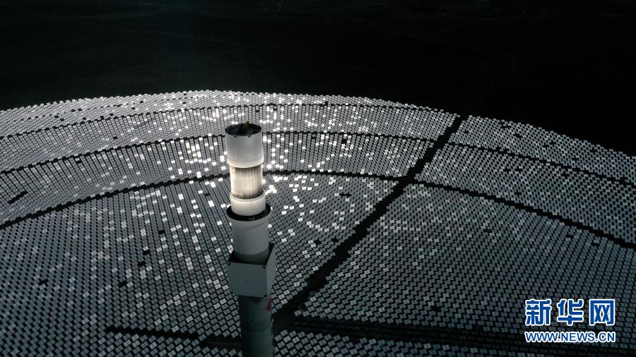 3月3日拍攝的位于青海省海南藏族自治州共和縣光伏產(chǎn)業(yè)園內(nèi)的一處塔式光熱發(fā)電項目(無人機照片)。 新華社記者 張宏祥 攝