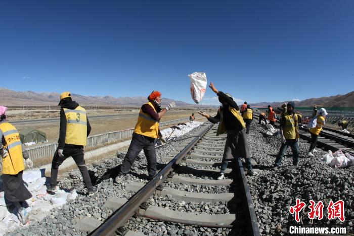 藍天白云,風(fēng)和日麗,念青唐古拉山腳下,一群“天路保健醫(yī)生”身穿工裝、手持器械、翹首以待準備為道床“洗澡修腳”。