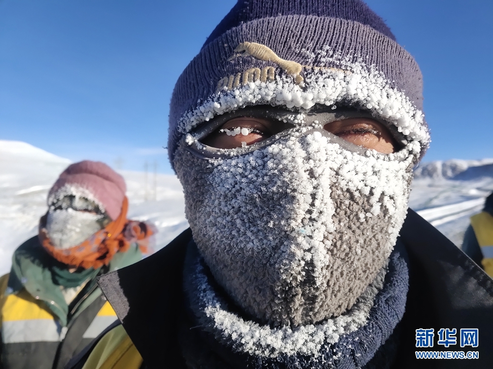 一天的工作結(jié)束后,她們的帽子、脖套上已布滿厚厚的冰霜。圖為中國(guó)鐵路青藏集團(tuán)公司格爾木工務(wù)段職工才仁文毛。