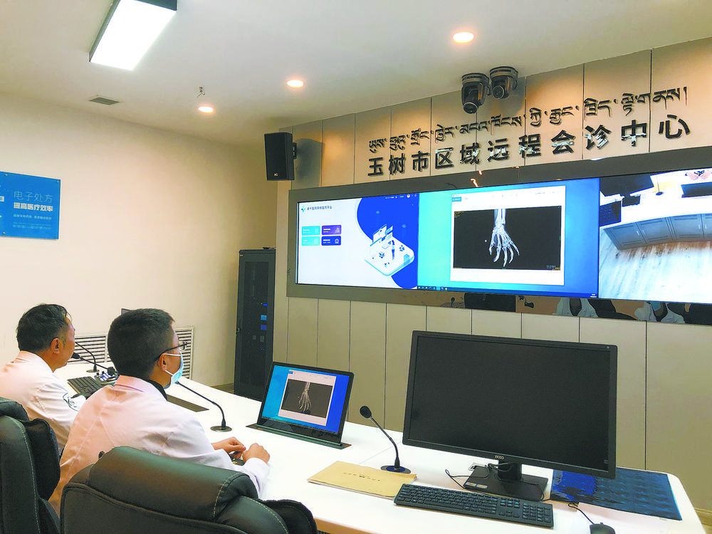 玉樹市八一醫(yī)院內(nèi)的玉樹市區(qū)域遠(yuǎn)程會(huì)診中心。張子涵 攝