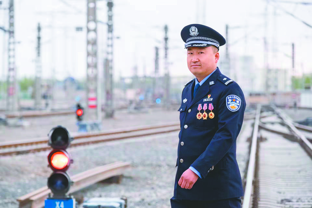 胸前的勛章是對鄭天海10年堅守的最好回報。青藏鐵路公安局格爾木公安處提供