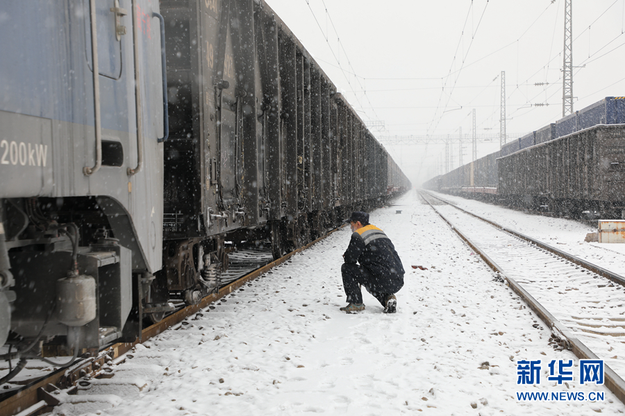 列檢人員對貨運列車進行檢查。新華網 馬建林 攝