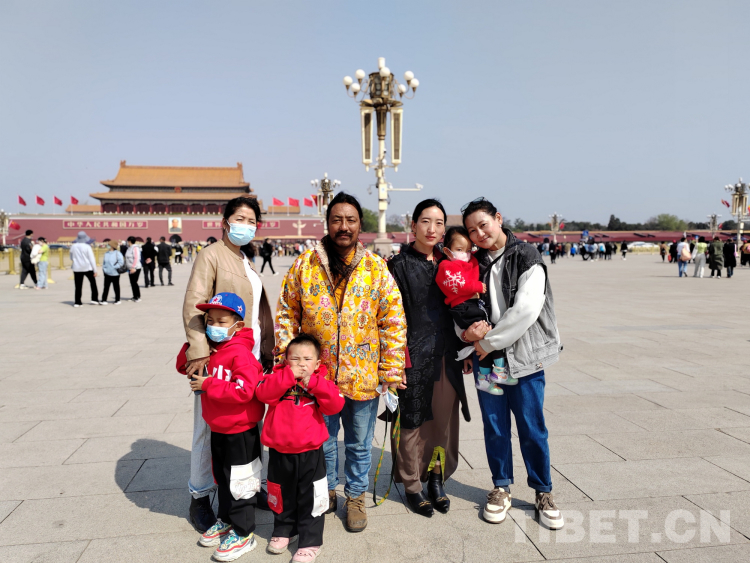 圖為3月31日,部分已出院的青海果洛唇腭裂患兒及患兒家屬來(lái)到天安門廣場(chǎng)游玩 北京同心共鑄公益基金會(huì)供圖