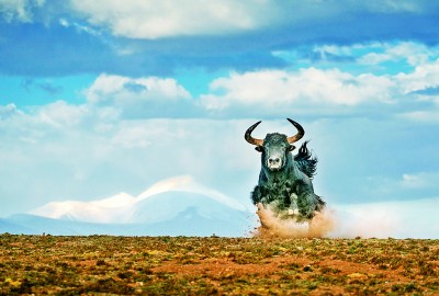 奔跑在三江源的野牦牛。樊向珍 攝/光明圖片