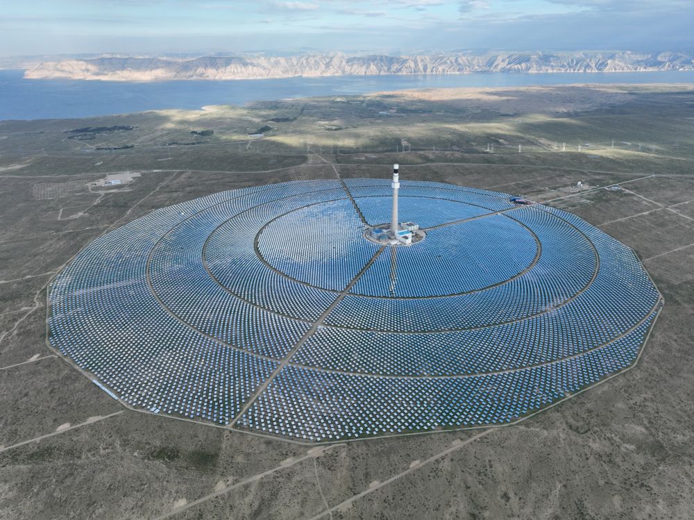 2023年8月15日在青海省海南藏族自治州共和縣拍攝的塔式光熱發(fā)電項(xiàng)目。新華社記者 邢廣利 攝