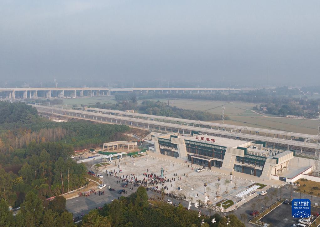 11月28日,俯瞰川青鐵路三星堆站(無(wú)人機(jī)照片)。新華社記者 江宏景 攝