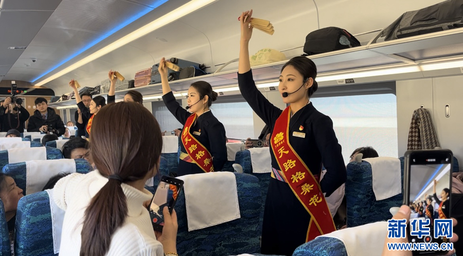 1月26日,中國(guó)鐵路青藏集團(tuán)有限公司西寧客運(yùn)段文藝小分隊(duì)在列車上為旅客表演。新華社記者 張龍 攝
