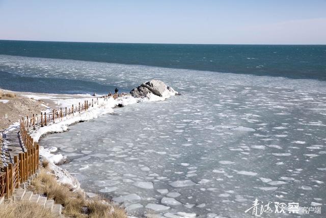 圖為青海湖湖面開始出現(xiàn)結冰現(xiàn)象。 通訊員 趙海梅攝