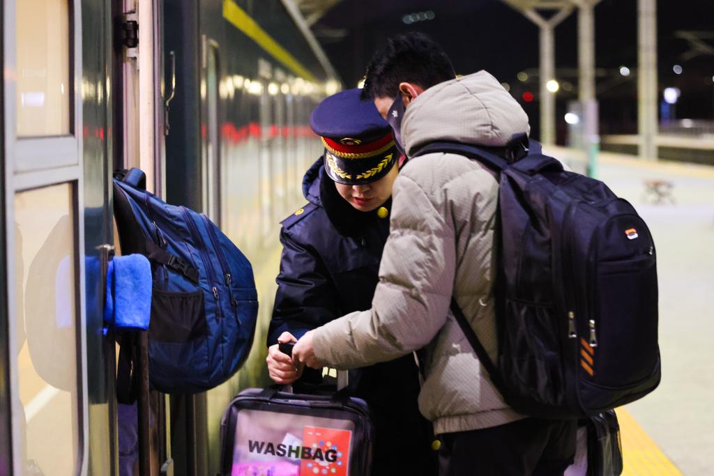 車廂外寒風(fēng)刺骨,車廂內(nèi)卻暖意融融?!拔覀冊趧?wù)工人員車廂特意安排了4名乘務(wù)員,協(xié)助旅客擺放行李、引導(dǎo)入座,還挑選了業(yè)務(wù)能力強的乘務(wù)員全程為車廂旅客提供服務(wù)?!盞390次列車長張彥良說。