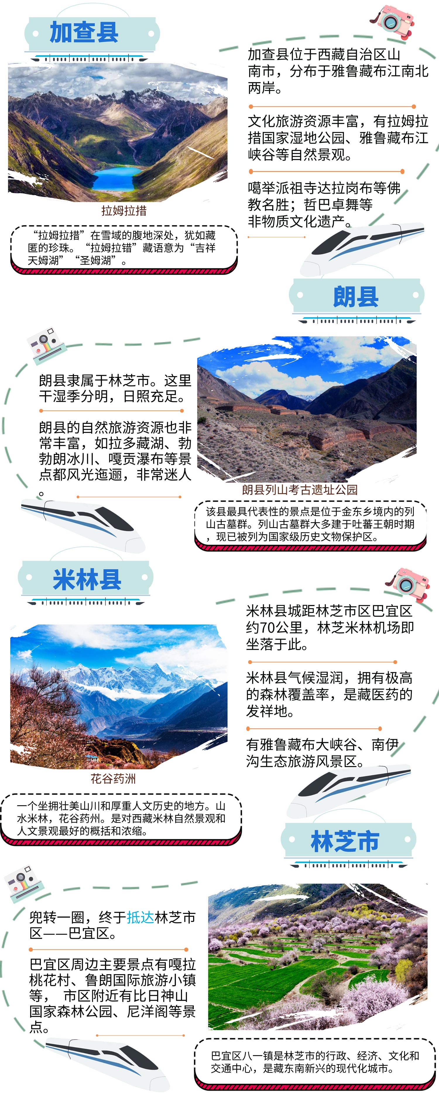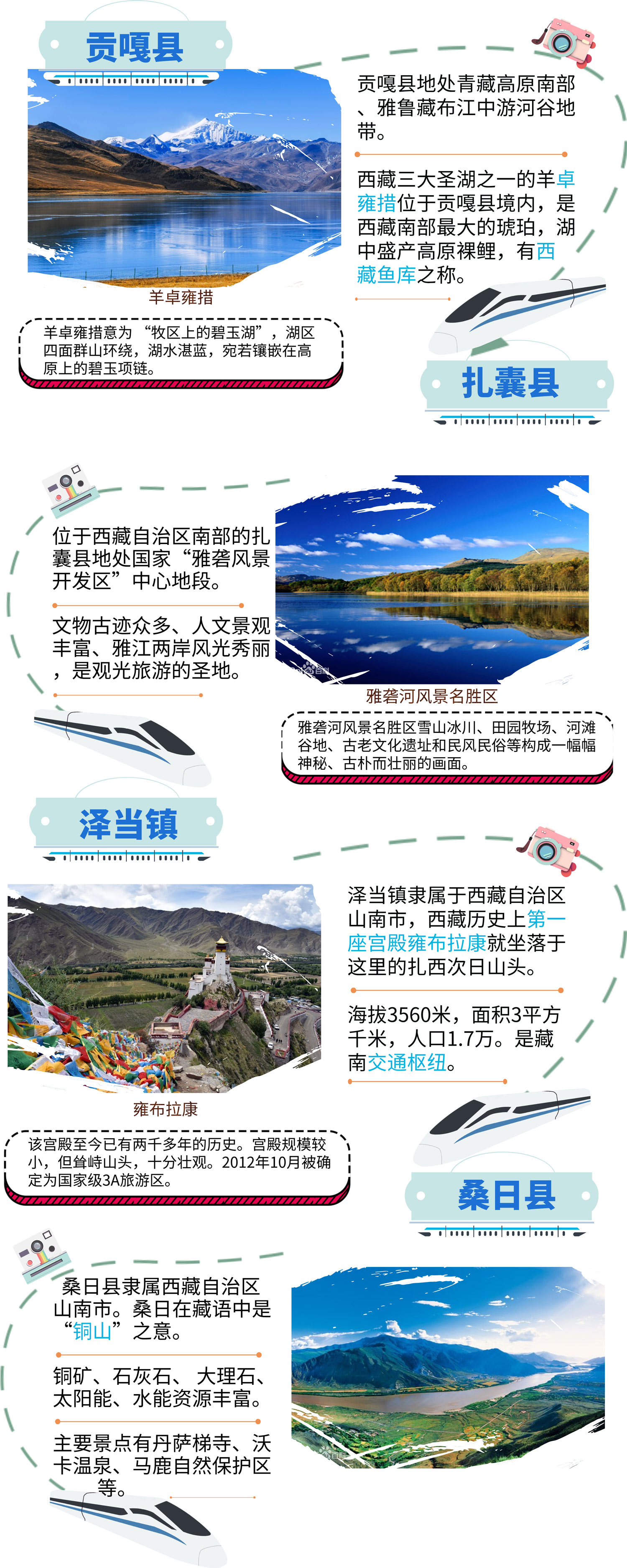 川藏鐵路拉薩至林芝段線路,沿途跨過雅魯藏布江,向東經(jīng)過貢嘎、扎囊、桑日、加查、朗縣、米林至林芝,一路都是美景。