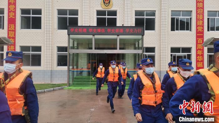 隨著急促的哨聲,中隊(duì)指戰(zhàn)員們迅速集合到位,值班員迅速給各戰(zhàn)斗小組分配任務(wù)后,緊急準(zhǔn)備了前期救災(zāi)的各項(xiàng)物資裝備,從接警到物資準(zhǔn)備、登車、駛出營(yíng)區(qū)共用了6分26秒。