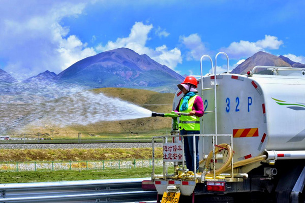 在惡劣條件下,是如何打造的?中國中鐵那羊高速四分部項(xiàng)目經(jīng)理陳永豐介紹:“都是在草甸恢復(fù)基礎(chǔ)上進(jìn)行的。剝離的草甸堆放在沿線,覆以遮陽網(wǎng),定時(shí)澆水養(yǎng)護(hù)。路基建好后,將其復(fù)植至邊坡等地。打好基礎(chǔ)后,選用了更適應(yīng)高原環(huán)境的鄉(xiāng)土草(花)種。”