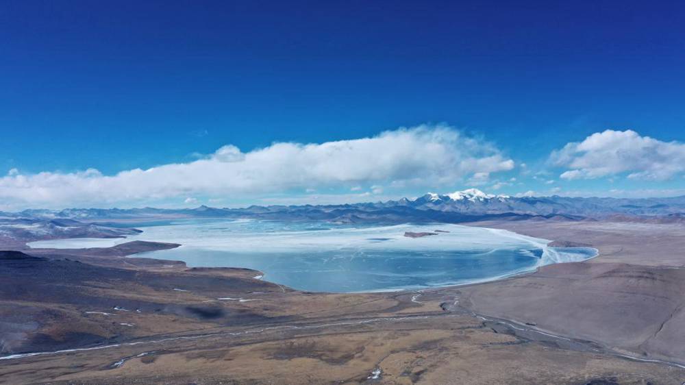 位于西藏山南市洛扎縣和浪卡子縣交界處的普莫雍錯(cuò),是喜馬拉雅山脈間的一個(gè)咸水湖,湖面海拔5070m。冬季的普莫雍錯(cuò)湖面會(huì)結(jié)冰,冰面通透可見湖底,在陽光的照射下,呈現(xiàn)出動(dòng)人心魄的藍(lán)。