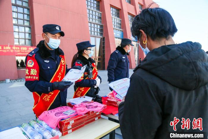 圖為拉薩鐵路公安民警聯(lián)合地方公安民警開(kāi)展禁毒反詐宣傳。拉薩鐵路公安處供圖
