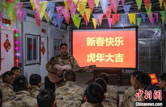 高原的風搖動著土褐色的偽裝網(wǎng),一縷縷陽光透過縫隙也變得靈動起來。晚飯過后,連隊的新春聯(lián)歡就在小院里拉開序幕。吉他,唱歌、相聲小品,最少也要站在大家面前講個笑話逗大家一樂,呼嘯的風聲淹沒在歡歌笑語中。