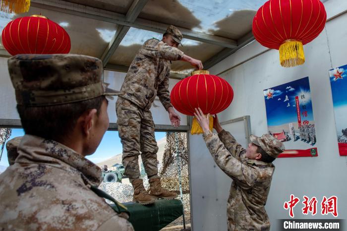 圖為官兵裝點布置營區(qū),營造春節(jié)氛圍。 王述東 攝