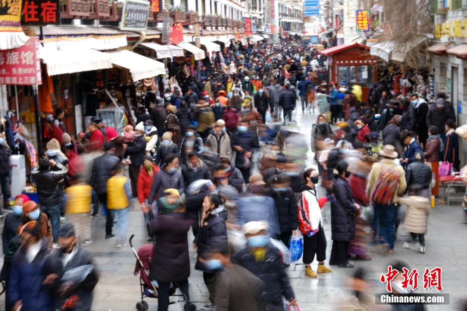 拉薩小昭寺附近采購年貨的民眾絡繹不絕。江飛波 攝